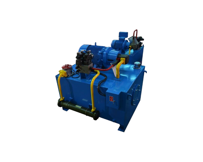 CDG液压油站,原理是电机带动油泵旋转,泵从油箱中吸油后打油,将机械能转化为液压油的压力能,液压油通过集成块(或阀组合)被液压阀实现了方向、压力、流量调节后经外接管路传输到液压机械的油缸或油马达中,从而控制了液动机方向的变换、力量的大小及速度的快慢,推动各种液压机械做功。